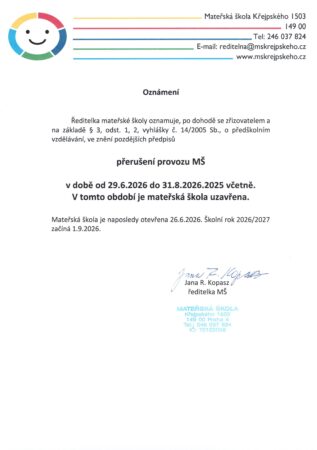 Informace pro zákonné zástupce dětí narozené do 1.4.2020 do 31.8.2020